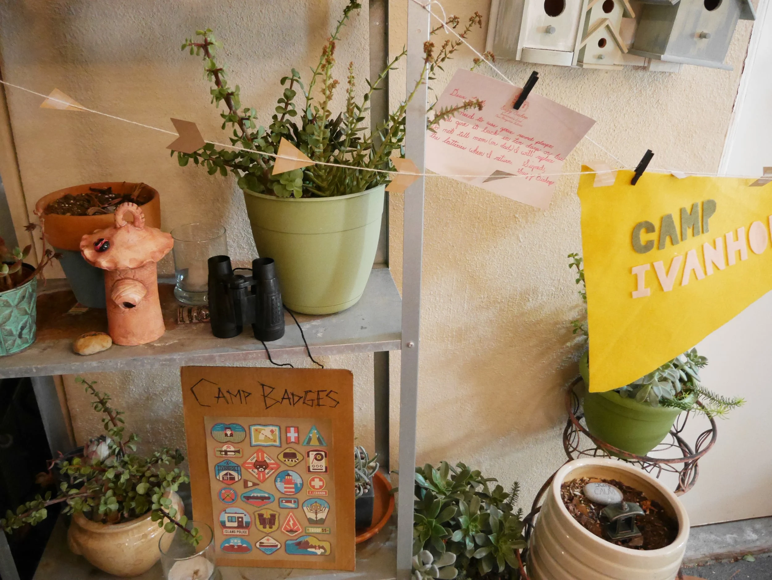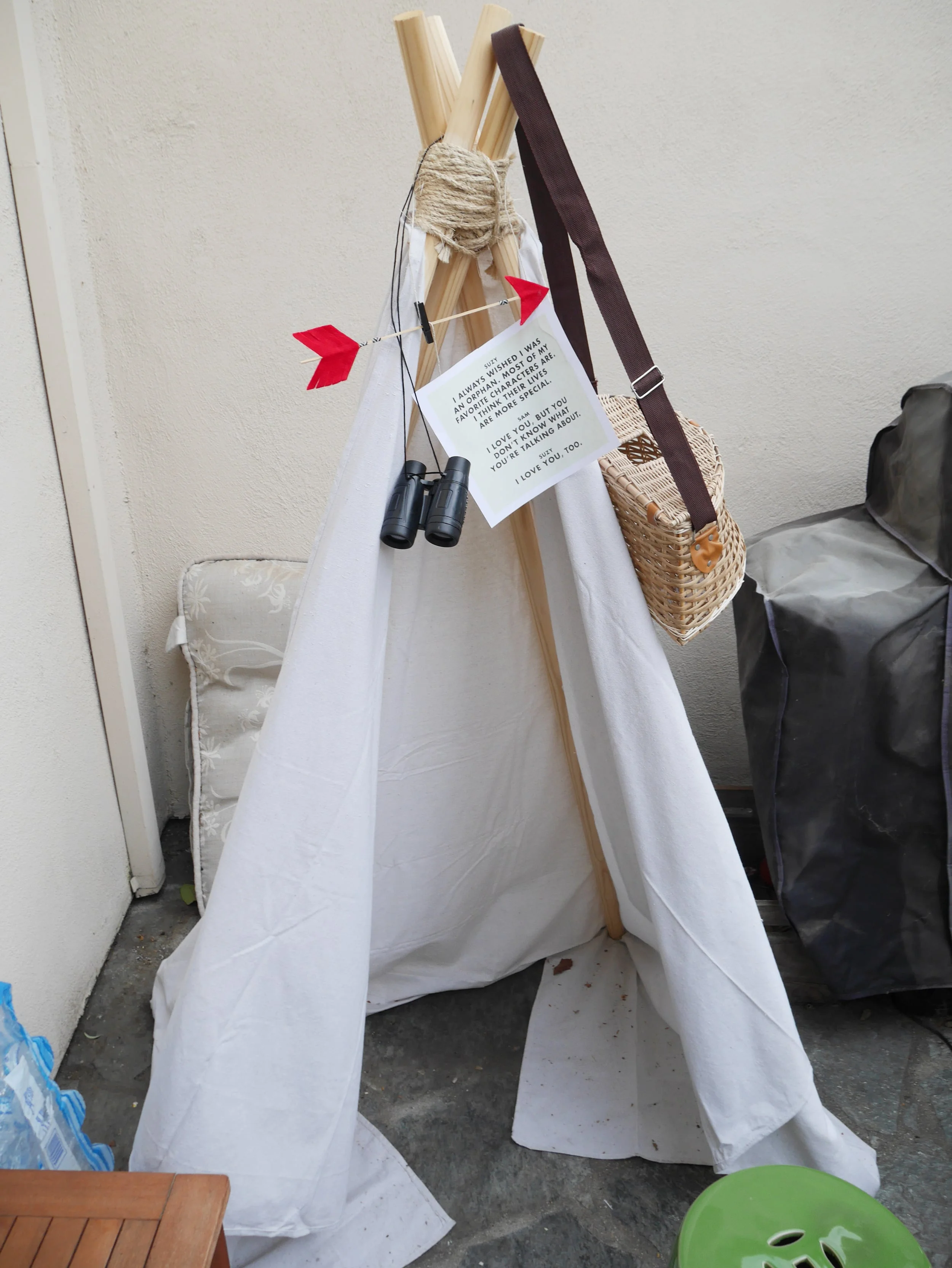 The patio was Moonrise Kingdom themed with a teepee and fun props.