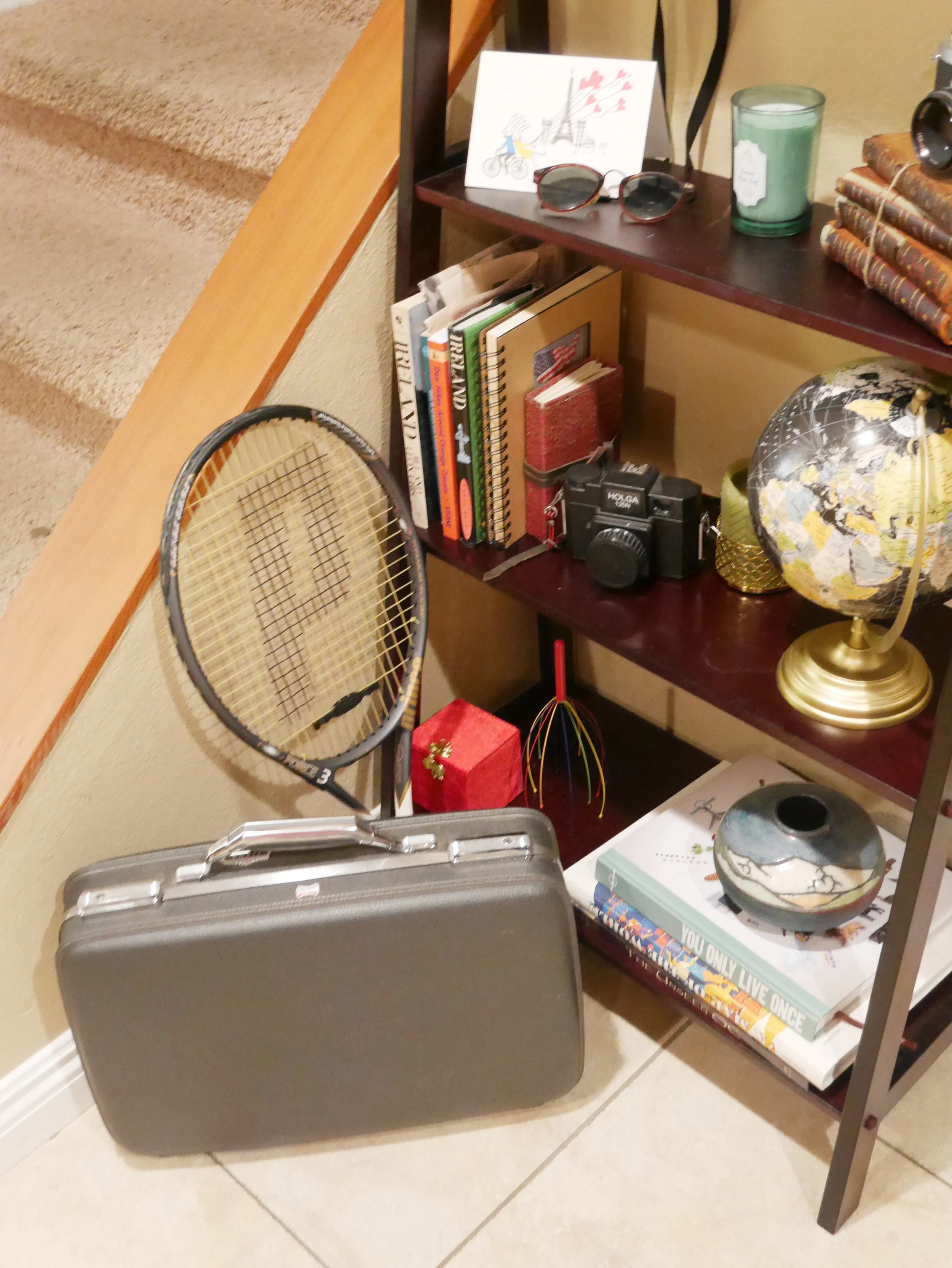 This room was the Royal Tenenbaums' room filled with old books, photos, Scrabble and of course a tennis racket.